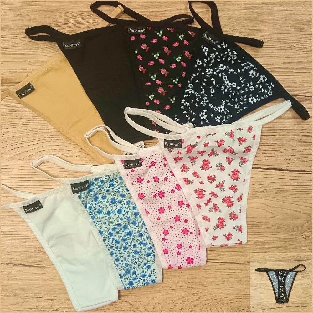 Cikkszám: BARONES állítható pántos pamut tanga (Ba 1) - FEHÉR ALAPON VIRÁGOS