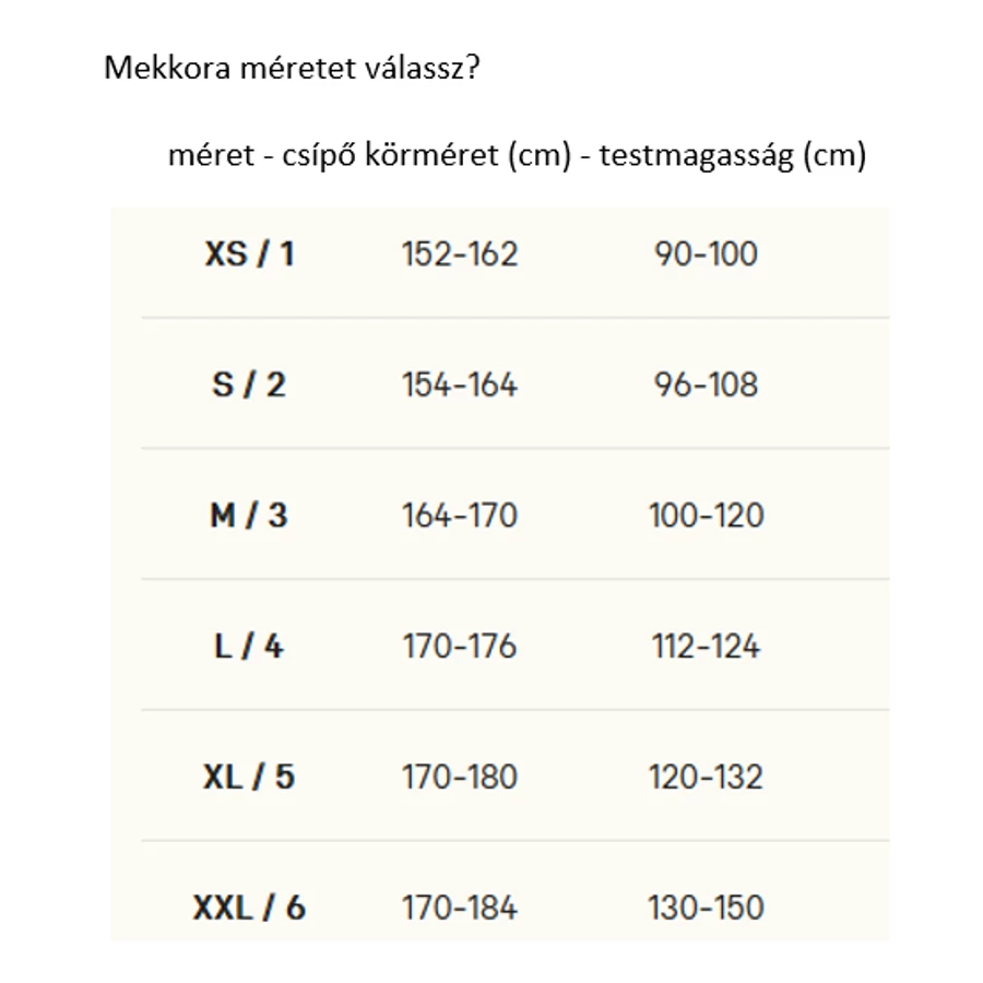 Gyártott méretek: 2/S, 3/M, 4/L, 5/XL