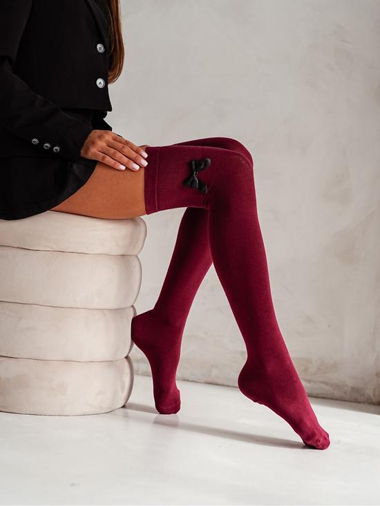 Nagyon csajos, szatén masnival díszített, egyedi, térd felettig érő vastag pamut combzokni.