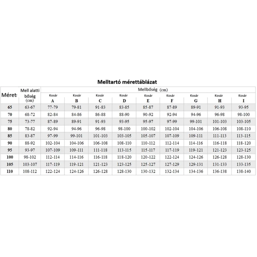 Méretek: 70, 75, 80, 85, 90, 95