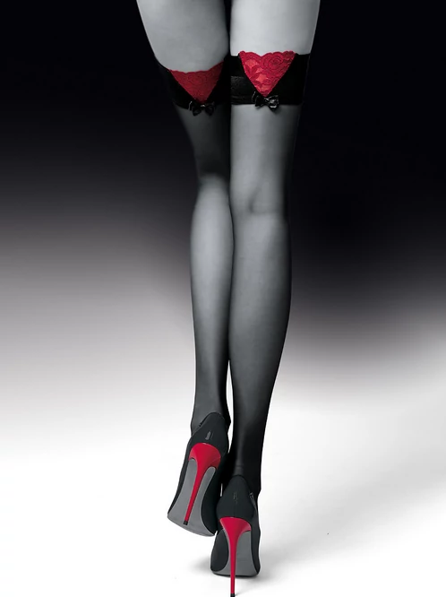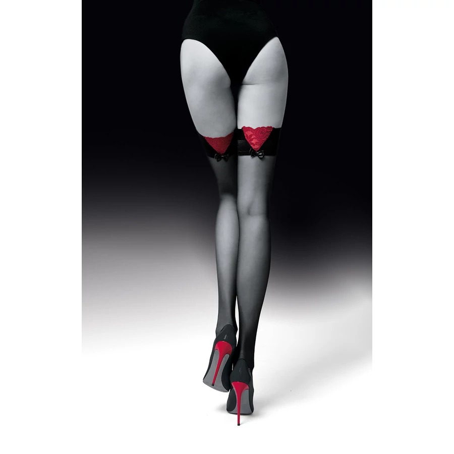 Cikkszám: KNITTEX Guilty 20den szilikonos, csipkés combfix - FEKETE-BORDÓ - 3 *