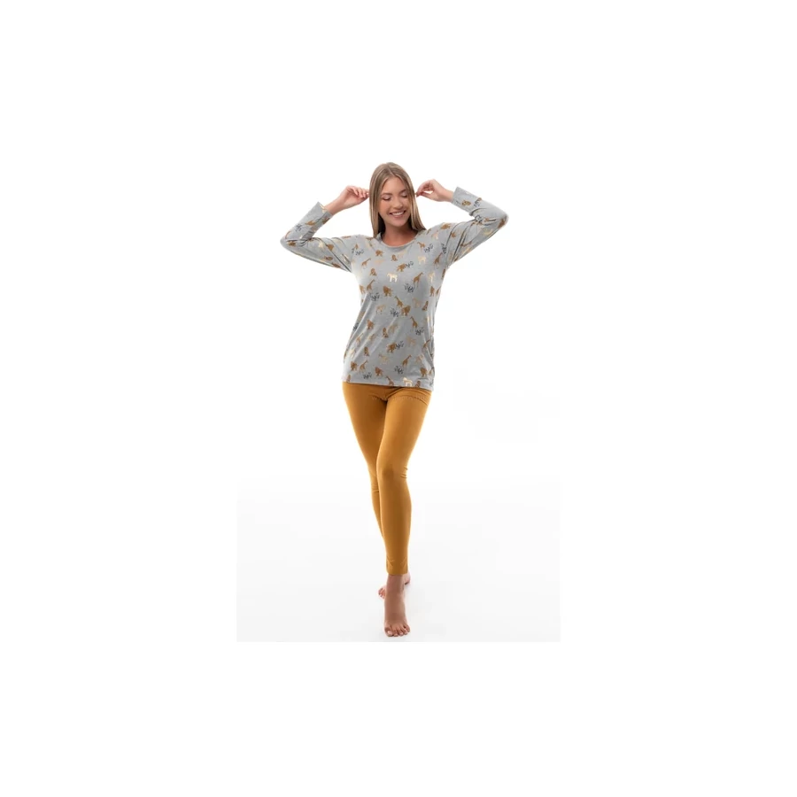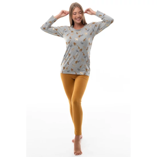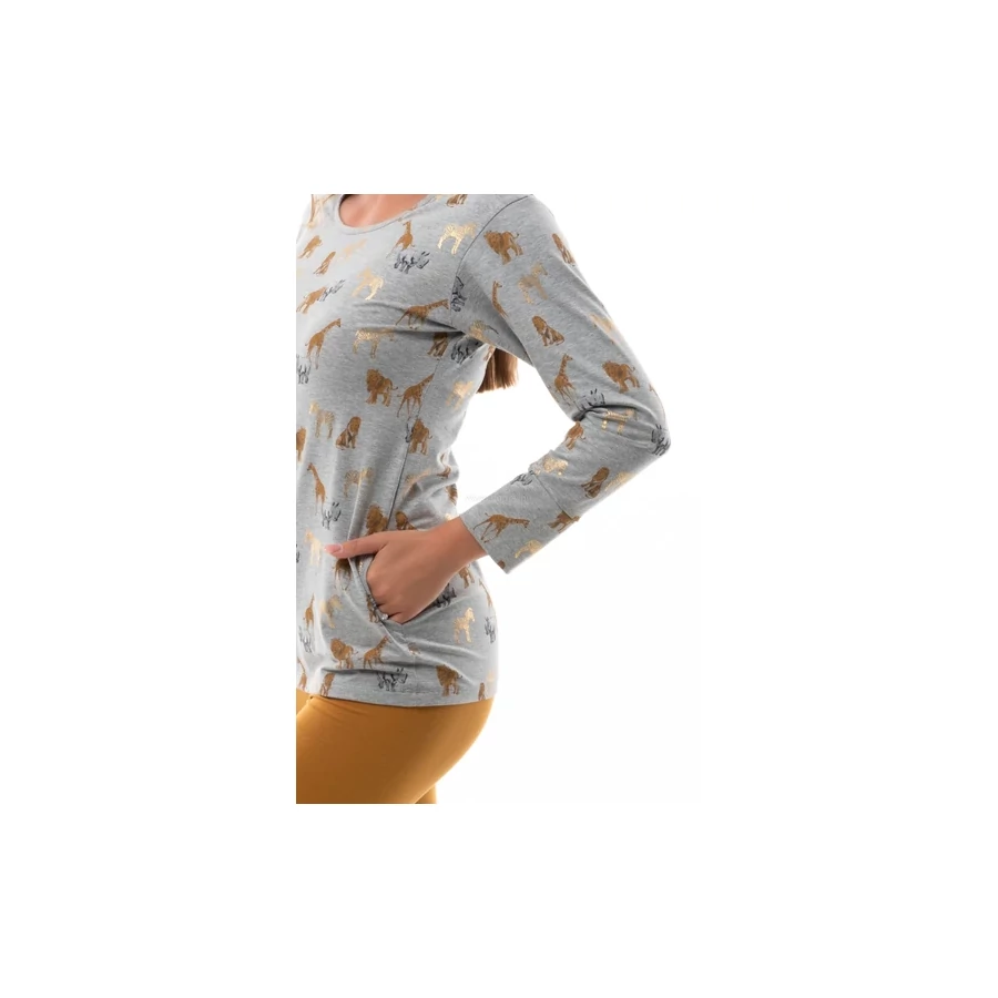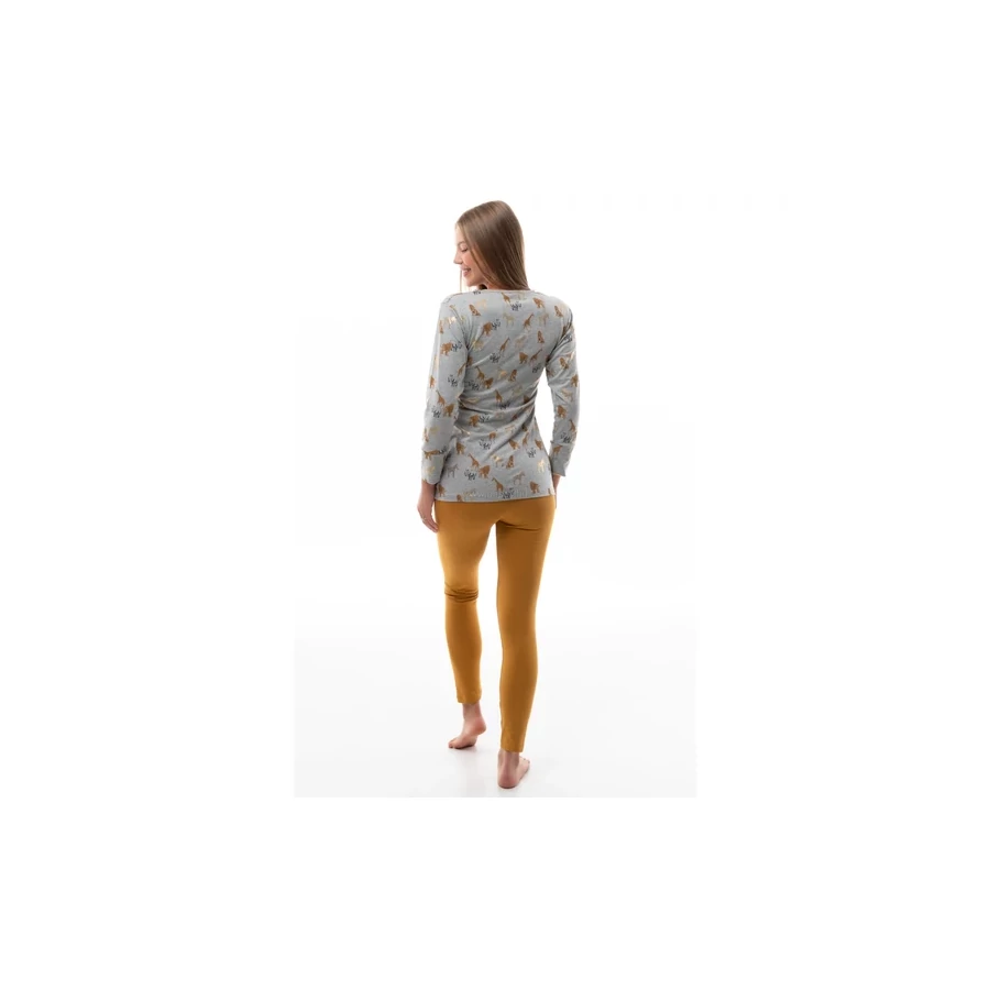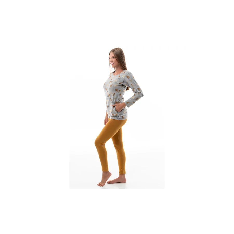 A nyomott mintás, laza, hátul hosszított felsőhöz hozzáillő cicanadrág/leggings tartozik.
