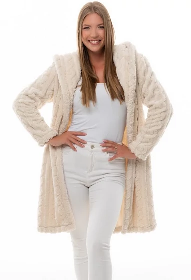 A BORKA KABÁT puha, csavart wellsoft anyagból készült, amely kényelmes meleget biztosít a hűvösebb napokon.
