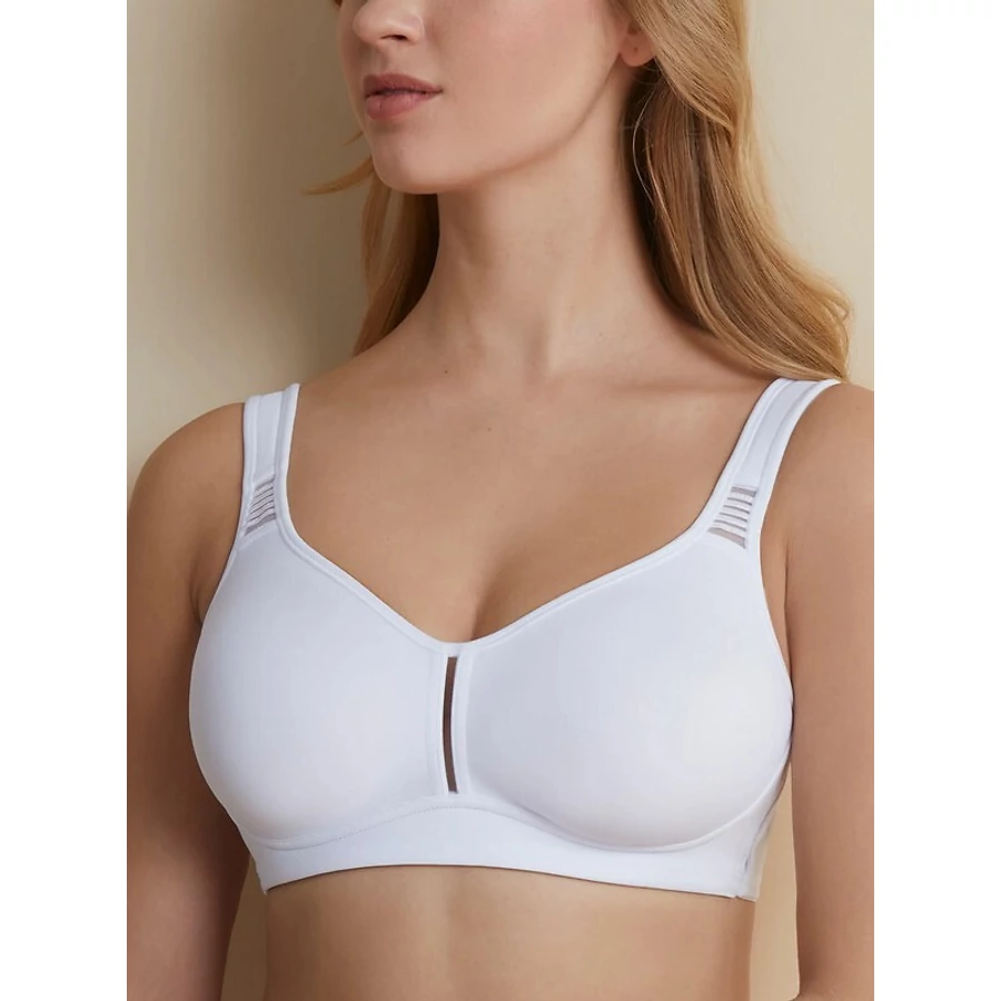Szuper, kényelmes, előformázott, kisebbítő hatású merevítő nélküli melltartó, teljesen sima légáteresztő anyagból, amely tökéletes tartást biztosít.