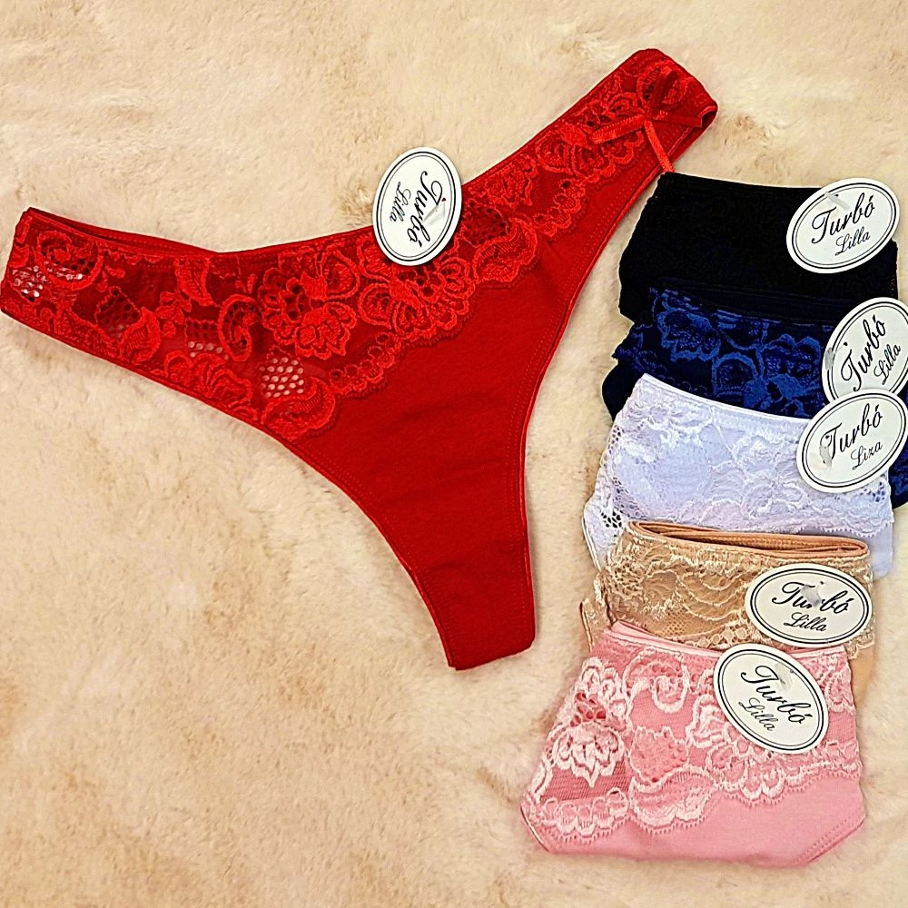 | TURBO LILLA Ferde csipkés pamut tanga, fényes gumizással |